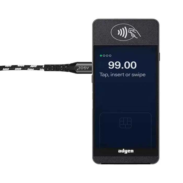 This cable is compatible with any USB-C charging port device. This includes Adyen S1E2L POS, Adyen S1F2L POS, and Adyen Verifone V210 POS