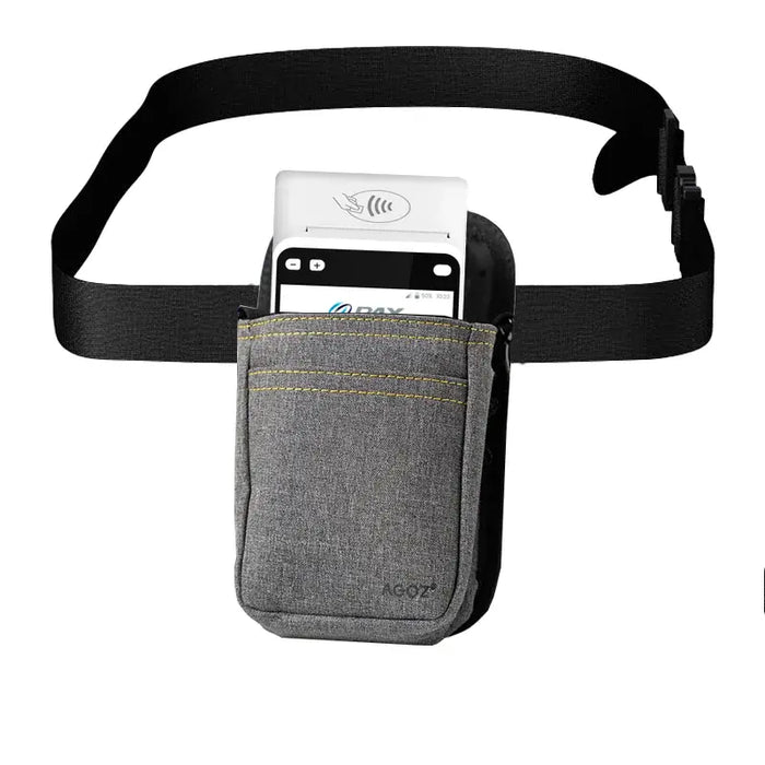 The Agoz PAX Handheld POS terminal Holster features a unique design that allows the mobile POS case to be carried either on your waist or as a crossbody. The adjustable strap and padded component provide a customized fit, allowing users to comfortably wear the holster for extended periods. This holster is ideal for employees working in restaurants, bars, cafes, and retail stores using mobile payment system devices.