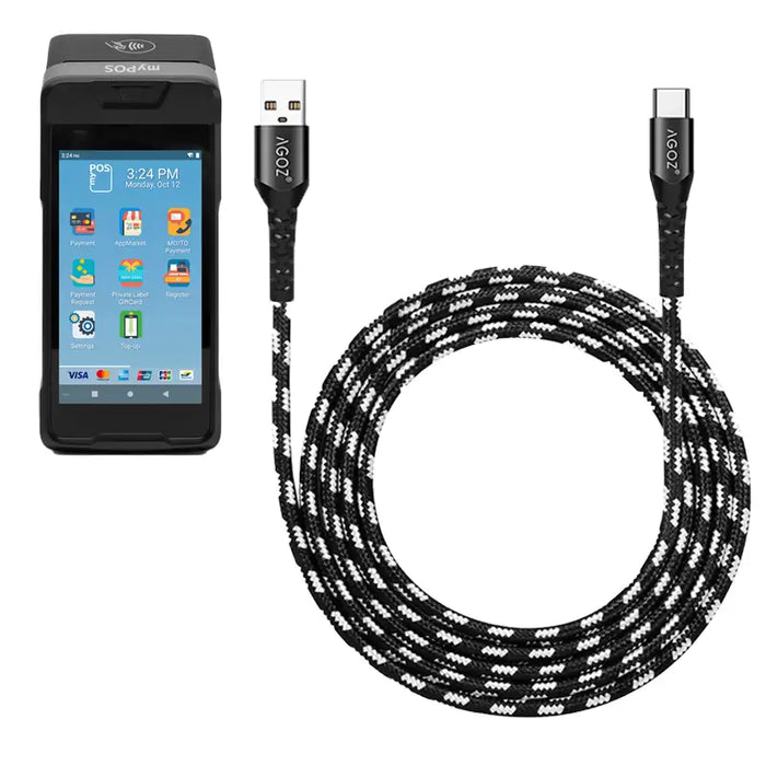 This cable is compatible with any USB-C charging port device. This includes MyPOS Carbon Payment Terminal, MyPOS Go 2 handheld, MyPOS Pro Terminal